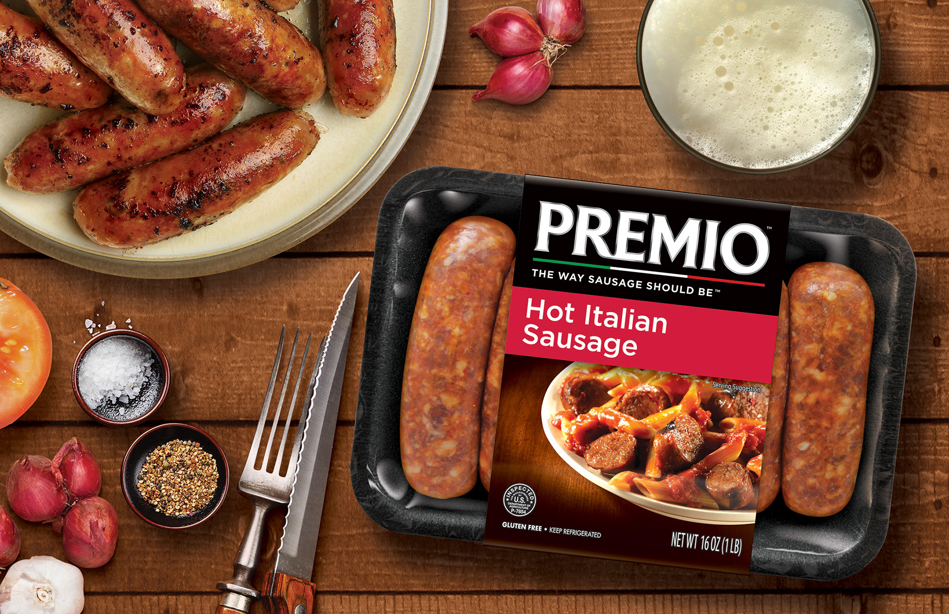 Premio sausages pack and style images.