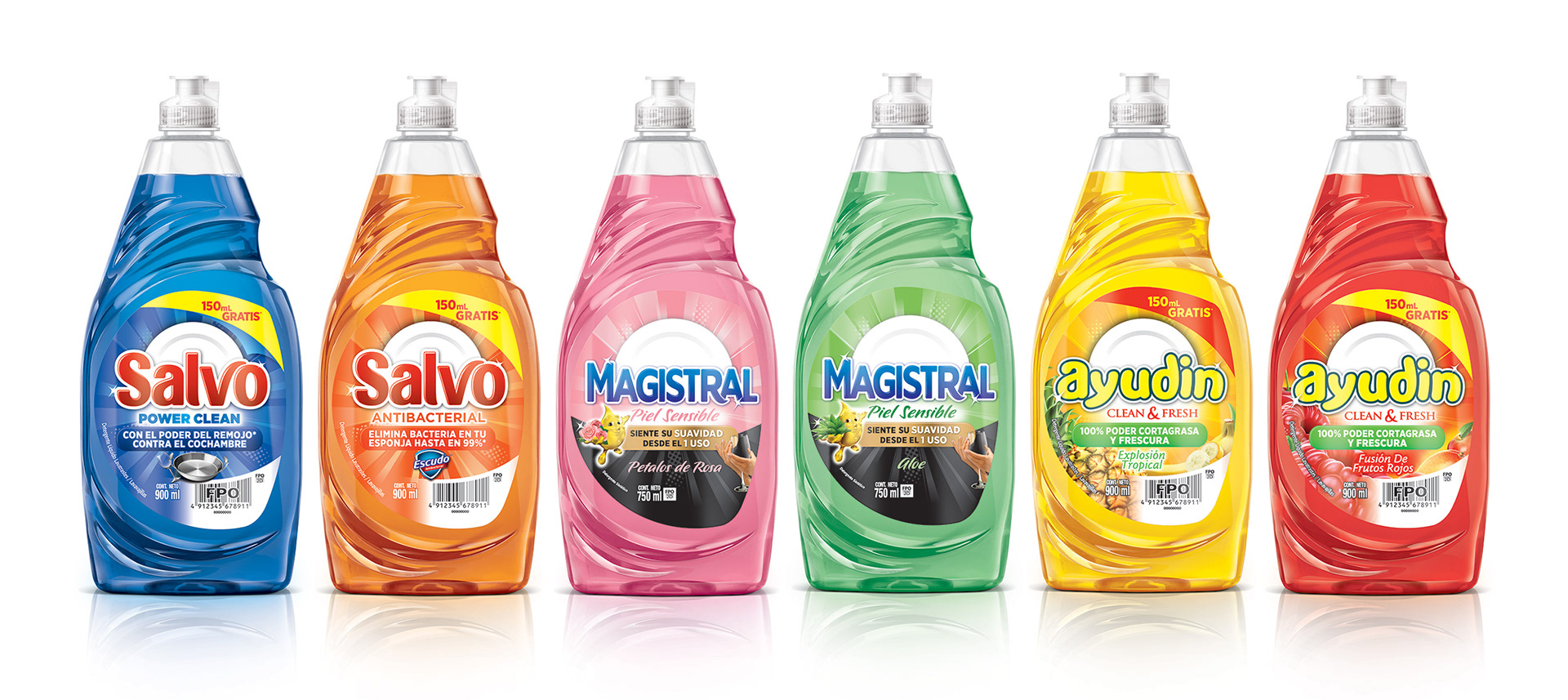 Various assets created for North America, Latin America, and European P&G dish soap lines. Mechanical files, product, flavor, and unit dose visualization.