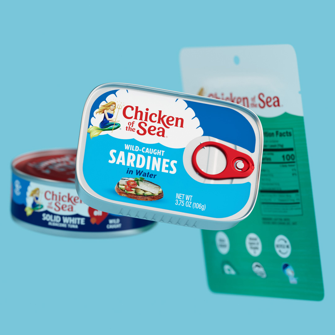 Product modeling, renderings and looping animations for the rebrand launch of Chicken of the Sea. Re-branded artwork provided by client. Used for client case study and social sites.